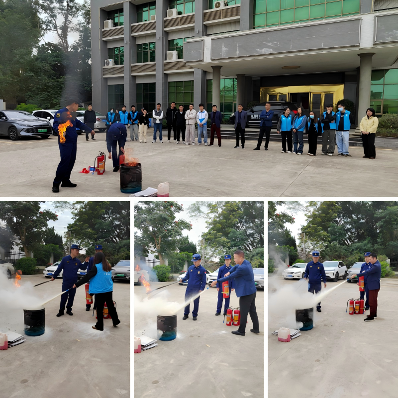 理论讲解结束后,实操演练环节随即开展。消防宣讲人员带领大家来到指定演练区域,详细演示了手提式干粉灭火器的构造、适用场景及正确使用方法,手把手指导每一位参训人员操作。