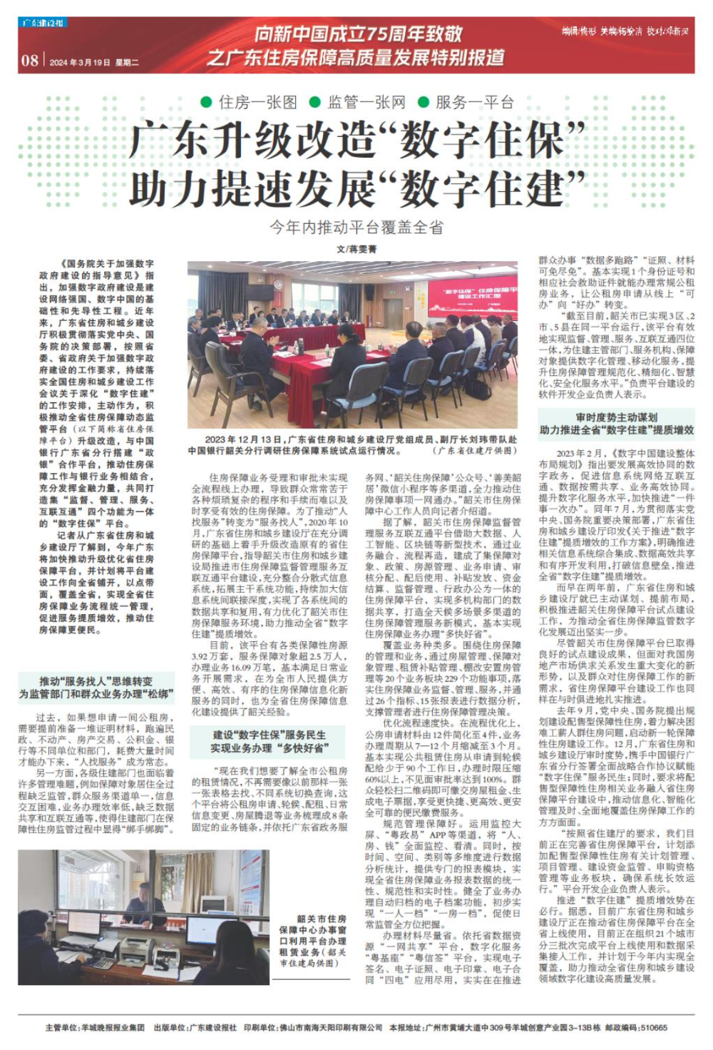 记者从广东省住房和城乡建设厅了解到,今年广东将加快推动升级优化省住房保障平台,并计划将平台建设工作向全省铺开,以点带面,覆盖全省,实现全省住房保障业务流程统一管理,促进服务提质增效,推动住房保障更便民。