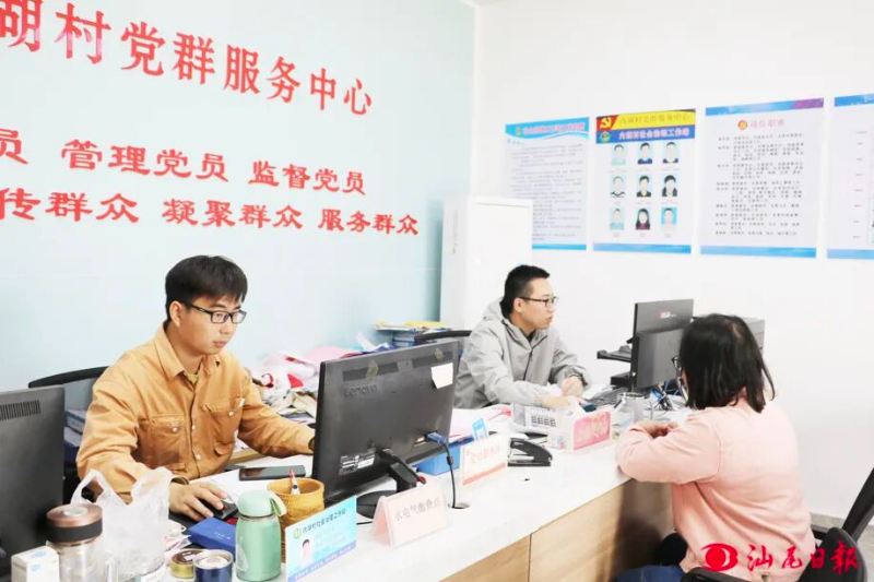 在内湖村党群服务中心,工作人员为群众解答咨询、办理事务。