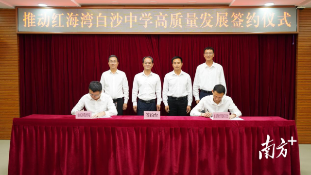 此次签约,是准备通过三至五年的时间,统筹市、区两级力量,将红海湾经济开发区白沙中学打造成市直属、办学质量居全市一流的普通高级中学。签约后,白沙中学将提级由汕尾市级管理,设立白沙中学改革转制过渡期,明确权限,做好各项转制配套工作,并科学做好2024年秋季高中招生工作,建立长效工作机制。
