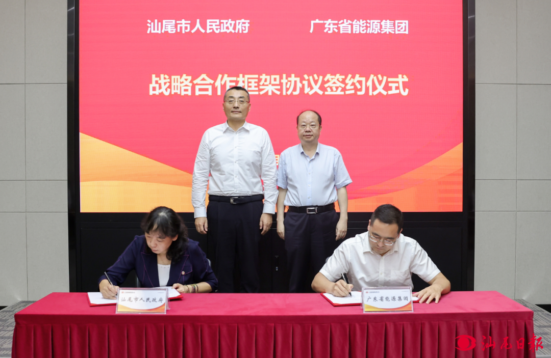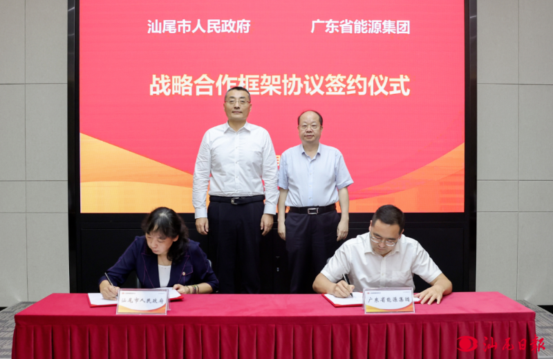 8月26日,汕尾市人民政府与广东省能源集团有限公司在广州签订战略合作框架协议。市委书记、市人大常委会主任逯峰,省能源集团党委书记、董事长张帆见证签约;副市长庄红琴,省能源集团副总经理刘宁宁代表双方签约。
