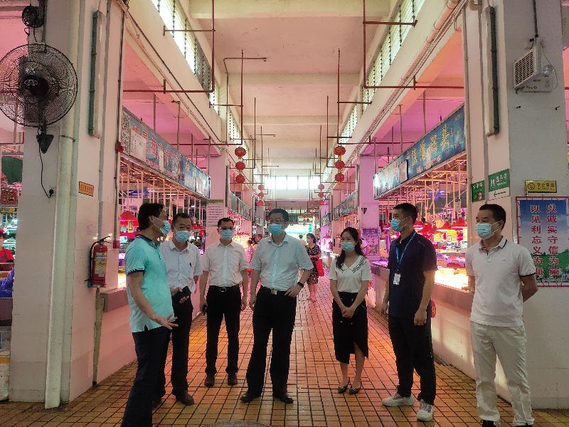 7月14日,汕尾市人民政府温树斌副市长带队到市城区检查零售药店、餐饮服务单位以及农贸市场等重点场所疫情防控工作,市政府副秘书长许骏涛,市市场监管局党组成员、副局长陈文戟等有关同志陪同。