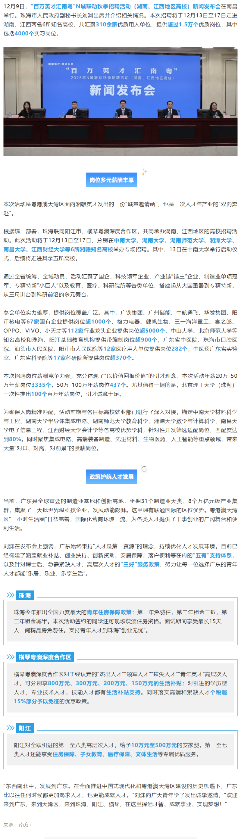 “百万英才汇南粤”,12月13日至17日湘赣见!