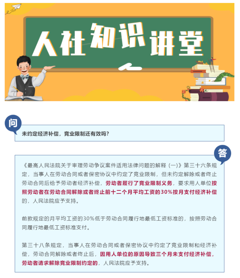 人社知识讲堂 | 未约定经济补偿,竞业限制还有效吗?