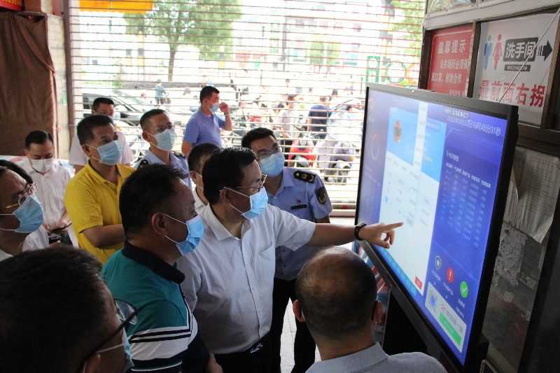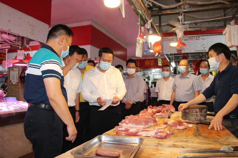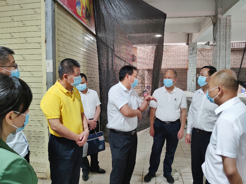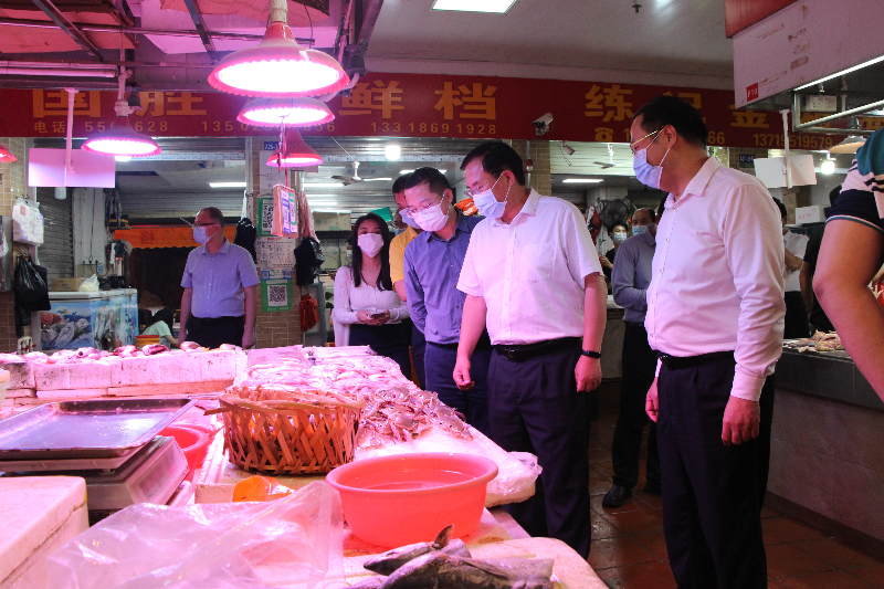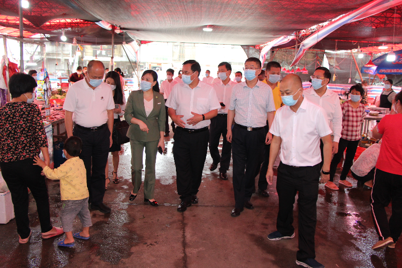 省市场监管局督导组一行深入陆丰市博美镇霞绕综合市场、陆河县新城综合市场,检查了农贸市场疫情防控“三查验”措施落实情况;询问了市场及周边规范管理、市场准入、食品安全、落实“限塑令”等规范管理情况,详细了解了经营环境、基础设施、管理措施、消防应急设施等硬件建设的农贸市场升级改造工作进展情况。