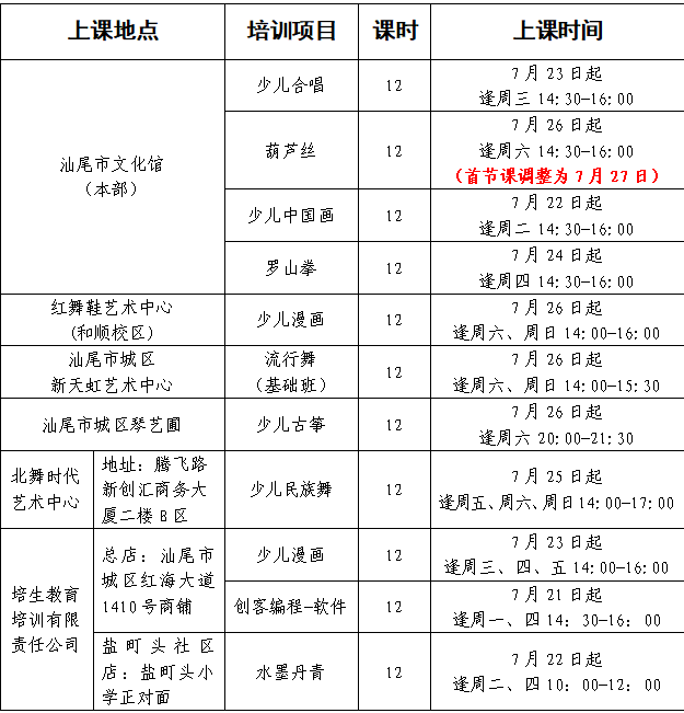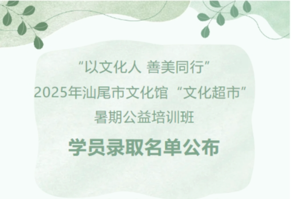 名单公布 | 汕尾市文化馆2025年暑期公益培训班学员录取名单公布!