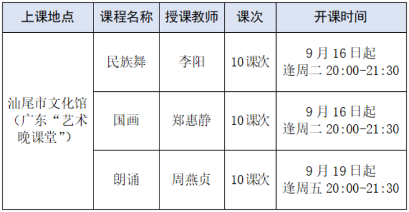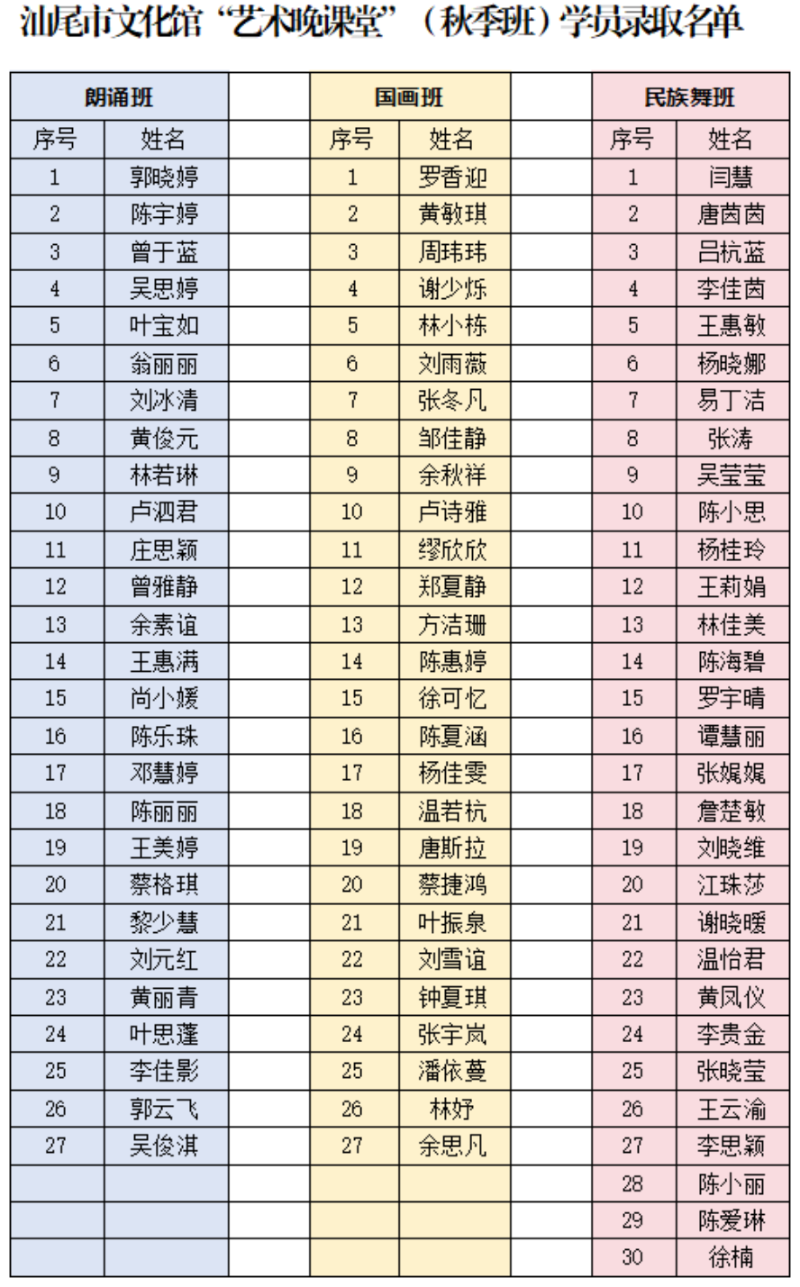 名单公布 | 2025汕尾市文化馆“艺术晚课堂”(秋季班)学员录取名单公布!请查收!