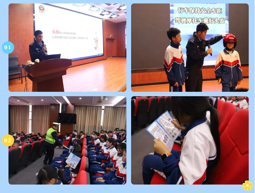 活动中,宣传民警通过PPT普及交通安全常识、播放警示视频、分析典型案例、发放宣传资料等形式,针对中学生违法驾驶摩托车、电动自行车的肇事风险隐患,用简洁明了的语言向同学们讲解了“飙车炸街”、翘头炫技、无证驾驶、未佩戴安全头盔、逆行、闯红灯等交通违法行为的危害性和严重后果。同时,提醒学生在上学、放学期间不要在马路上嬉戏打闹,要时刻保持警惕,远离大货车,拒绝乘坐非法营运、超员等存在安全隐患的车辆。