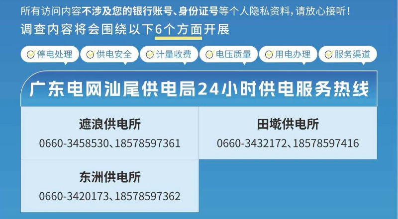 在接下来的第三方客户满意度评价中,当您接到“020-95598”或“95598”来电,恳请您耐心接听,期待您给予“十分满意” 的肯定。您的每一项反馈与认可,都是我们改进工作、提升服务、传递电力温暖的不竭动力。