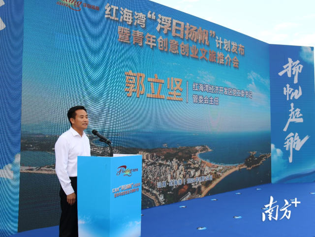 红海湾经济开发区党工委书记、管委会主任郭立坚在发布会上致辞,他表示,“浮日扬帆”计划的主要目的就是要用特色的平台聚集青年,用美丽的环境留住青年,用兴旺的产业成就青年。红海湾近年来取得的成绩离不开在红海湾干事创业的青年身影,每一项成就都是红海湾与时代青年的“双向奔赴”,红海湾将举全区之力、集全区之智,服务青年、聚集青年,让大家享服务的“C位”、当发展的“C位”,全力打造政策更优、成本更低、服务更好、效率更高的青年创意创业环境。