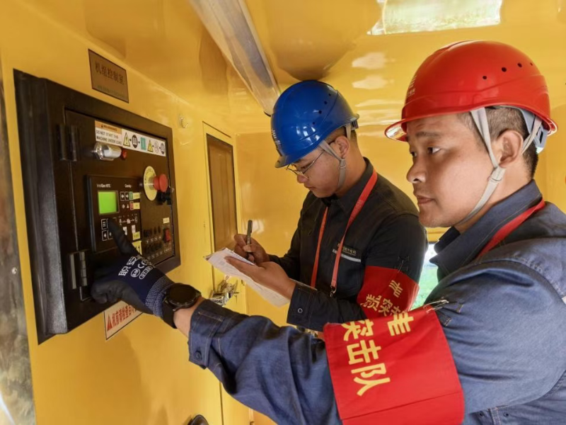 首日比赛期间,52名保供电人员执行不间断轮值。正午时分,烈日当空,在赛场东南角值守点,一组人员仍在认真记录设备运行数据。