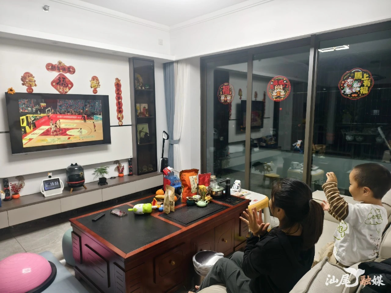 和家人围坐看直播的王女士,全程跟着直播里的呐喊声为球队加油,当看到汕尾队进球时,她和身旁的孩子欢呼雀跃,蹦跳着大声呐喊“汕尾加油”。看到画面里汕尾助威团身着本土特色服饰活力助阵,母子俩更是忍不住一同拍手叫好:“隔着屏幕都能感受到现场的热烈,咱汕尾的助威团太有特色了,英歌舞的刚劲配着助威的活力,球队也全程拼劲十足,这就是汕尾的活力与担当,永远为家乡球队骄傲!”