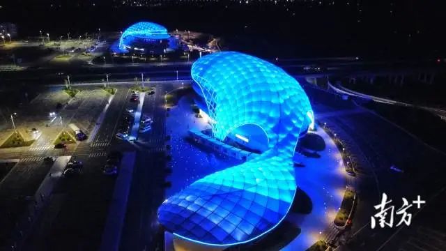 比如,在打造服务区主体“网状天幕”时,长沙湾服务区创新选用新型环保ETFE气枕膜材料,应用数字预拼装技术,有效提高施工效率、降低建设成本并确保施工安全,成功呈现两条“大蓝鲸”生动形象。