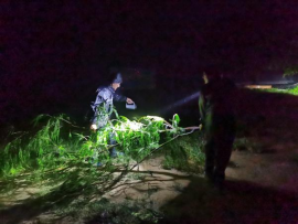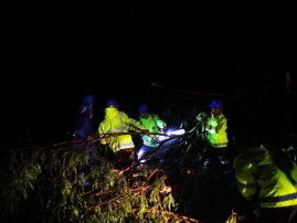遮浪街道发扬连续作战精神,协同配合各方力量,迅速集结各方力量投入到抢险救灾中。受台风天气影响,部分树木倒伏在道路,形成路障。遮浪街道及时联合区应急管理局、区自然资源和建设局等部门,发动中铁二建等社会力量,在确保自身安全的情况下,组织应急救援队第一时间对道路情况开展排查,及时处置道路淤积、倒伏树木、倾倒隔离栏和受损广告牌等问题,争分夺秒维护道路交通畅通,保障广大群众出行安全。