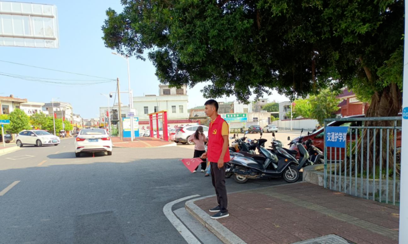 组织交通劝导志愿服务队在学校周边主干道上进行交通劝导,重点对未佩戴安全头盔和违反交通法规的学生、家长和来往行人进行现场劝导和警示教育,引导群众自觉遵守交通规则,养成良好的交通行为习惯,不断提高群众交通安全意识,营造安全、文明的学校周边道路交通环境。