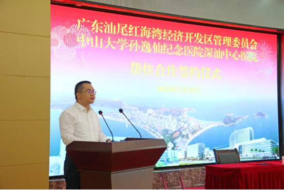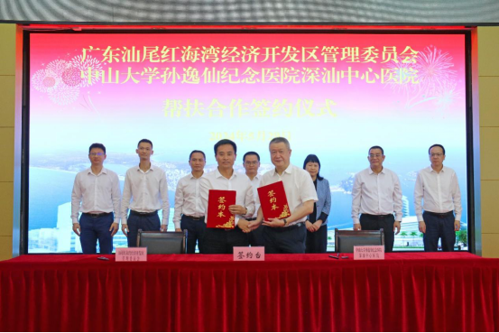 5月29日,广东汕尾红海湾经济开发区管理委员会与中山大学孙逸仙纪念医院深汕中心医院在红海湾举行帮扶合作签约仪式,本次合作是推进区域卫生健康高质量发展的一次重要实践,对补齐区域医疗资源配置短板、提升红海湾整体医疗水平,加力提速“百千万工程”,促进区域协调发展具有重大意义。