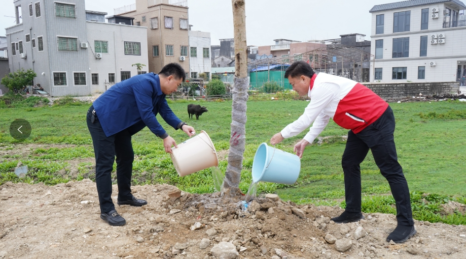春风催新绿,植树正当时。3月14日上午,红海湾经济开发区联合汕尾开放大学,以“我为全运种棵树”为主题,到东洲街道湖东村开展绿美生态建设义务植树活动,为美丽红海湾建设添绿增彩。 植树现场,彭帝鸿、陈炳玄等与干部职工、志愿者代表一起,分工协作、挥锹铲土、填坑夯苗、提桶浇水……一派热火朝天的繁忙景象。经过大家的辛勤劳动,一株株新栽种的苗木错落有致、迎风挺立,为大地增添了一片新绿,萌发着无限生机和希望。