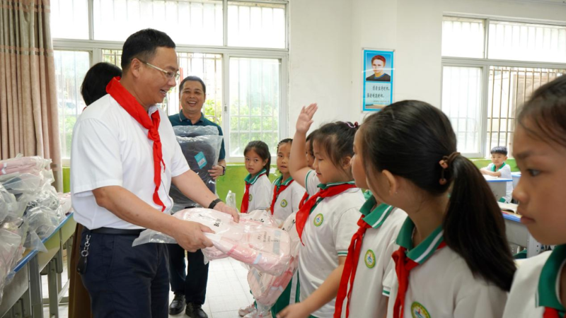 在遮浪街道中心小学,谢振锋与孩子们亲切交流互动。在琅琅读书声中,谢振锋边走边问,察看校园建设、课程设置、校园安全等情况,并来到孩子们中间,为孩子们送上学习用具等儿童节礼物,勉励孩子们刻苦学习、全面发展,努力成为有理想、有本领、有担当的新时代好少年。
