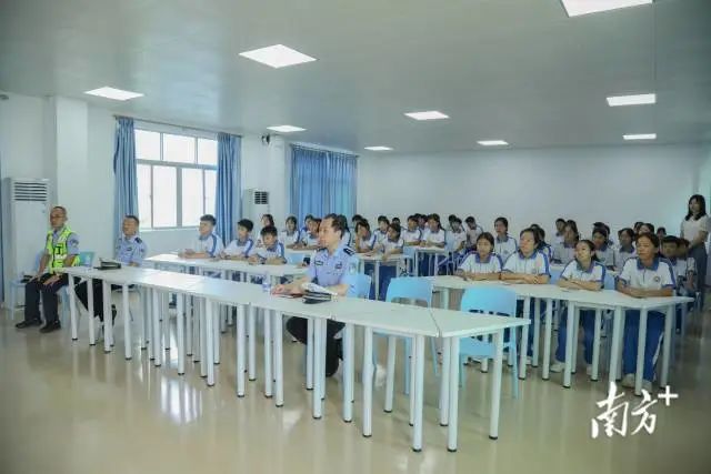 汕尾市公安局交通警察支队红海湾大队教导员陈显明为同学授课。