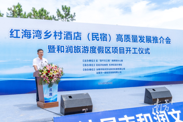 9月20日,红海湾乡村酒店(民宿)高质量发展推介会暨和润旅游度假区项目开工仪式在红海湾东洲街道举行,本次活动由红海湾经济开发区“百千万工程”指挥部办公室主办,红海湾经济开发区经济发展局、东洲街道办事处承办。本次活动旨在加快构建新发展格局,推动红海湾旅游业高质量发展,推动汕尾旅游城市建设,切实提高汕尾的知名度和美誉度。