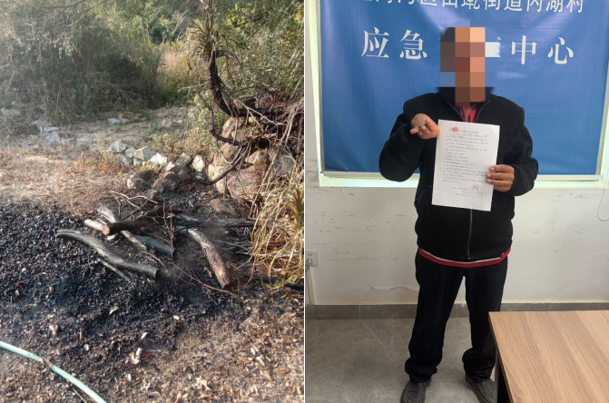 2026年1月4日下午,田墘街道内湖村村民陈某在本村山林边焚烧荔枝树叶,属地工作人员巡查发现后,立即赶赴现场制止,并彻底扑灭明火。