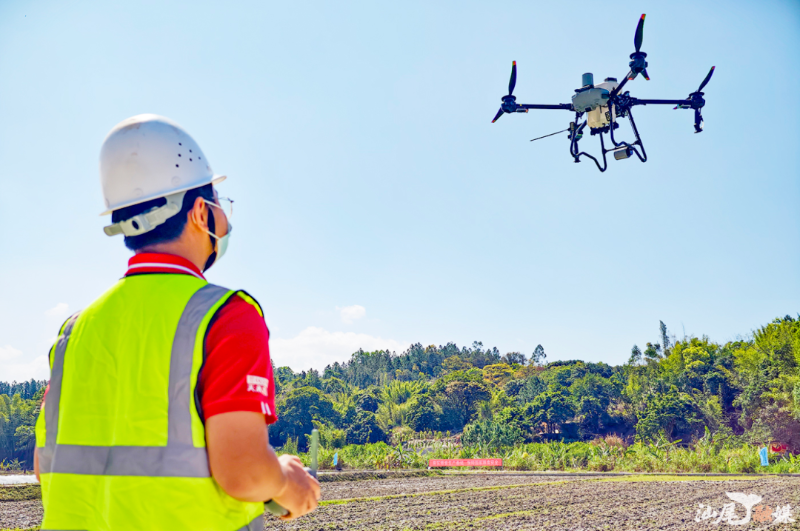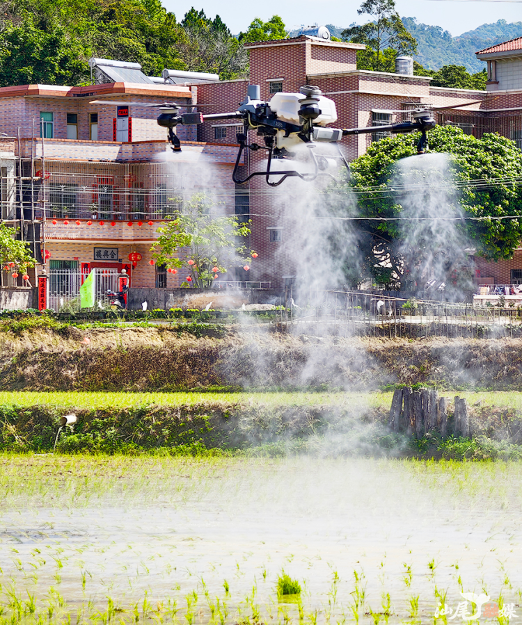 在海陆丰大地,放眼望去,连片的稻田平整开阔,微风拂过,泥土的清香扑面而来。田埂间,农户分工协作、干劲十足,有的弯腰整理秧苗,有的熟练操作农机设备,田间地头一派繁忙景象。记者观察到,各类新农具也尽显身手,为春耕生产注入强劲动能。履带式旋耕机来回穿梭,翻耕泥土、平整田野,一气呵成;高速插秧机匀速行进,一行行翠绿秧苗整齐扎根,转眼间为田野披上绿色“新装”;植保无人机盘旋上空,将科技动能洒向田间地头。